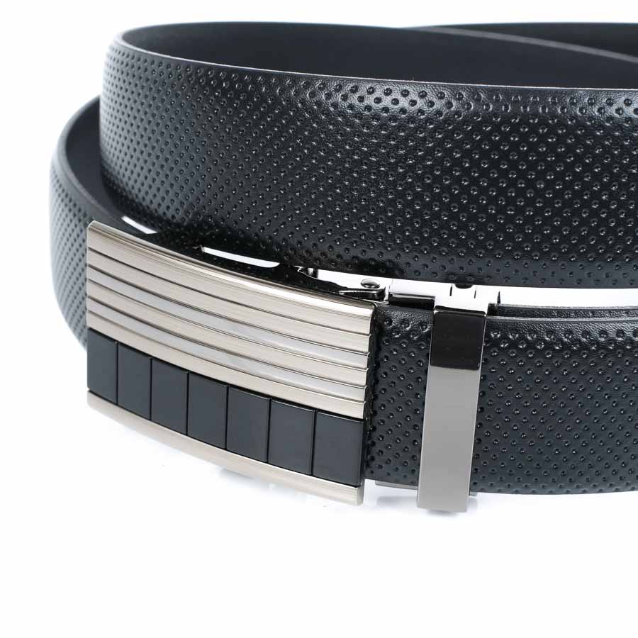 Valódi bőrből készült férfi öv fekete színben, különleges fém automata övcsattal.