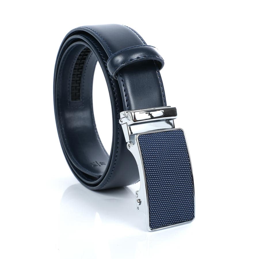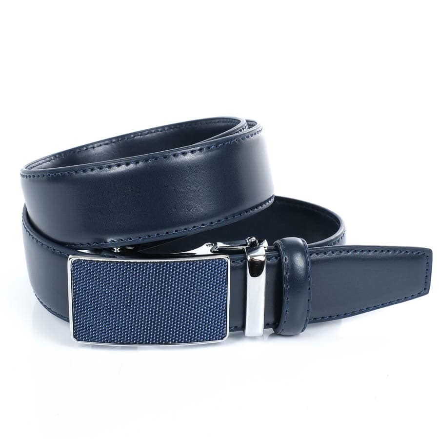 Valódi bőrből készült elegáns sötétkék férfi öv, kék automata övcsattal.