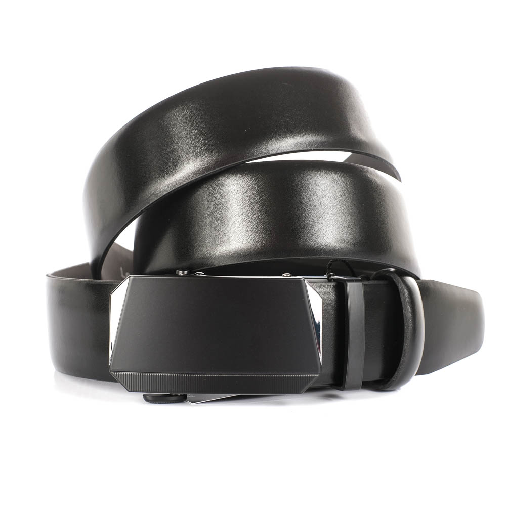 Valódi bőrből készült férfi öv fekete színben, elegáns matt fekete automata övcsattal.