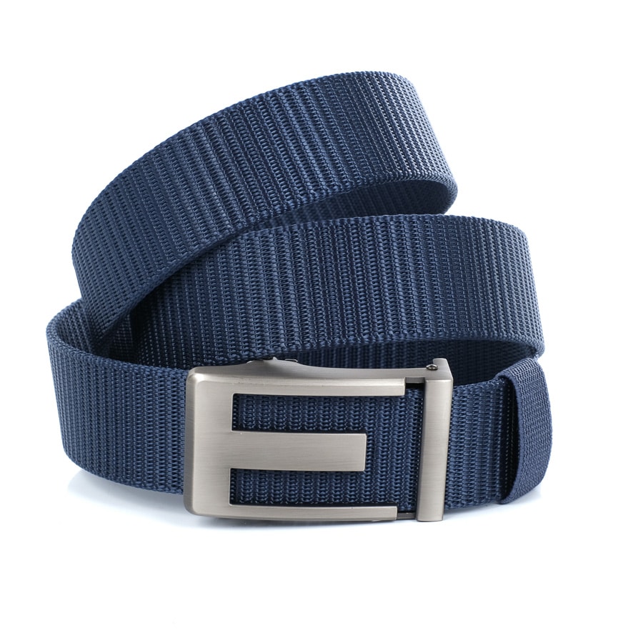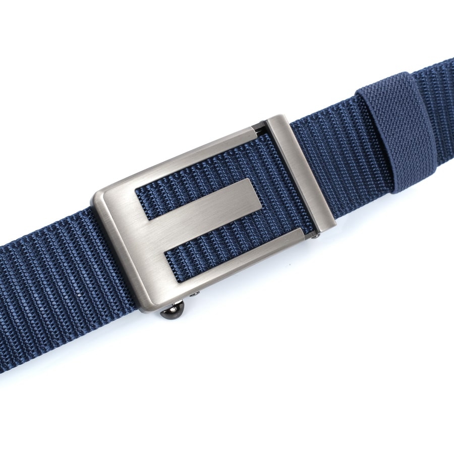 Férfi textil öv, fém automata csattal, kék