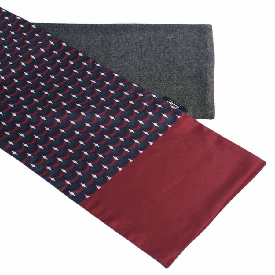 Exkluzív kiegészítő alkalmi viseletéhez! Külső oldala fényes és elegáns, belső része puha és meleg. Sötétkék alapon bordó-fehér mintája figyelemfelkeltő, ugyanakkor trendi és férfias. Mérete 20 cm x 155 cm. Lengyel termék, ami egyet jelent a prémium minőséggel. Öltönyhöz és szövetkabáthoz is kiváló választás. Esküvői, vagy egyéb alkalmi megjelenéshez ajánljuk, de tökéletes kiegészítő lehet például üzletembereknek, ügyvédeknek, orvosoknak.