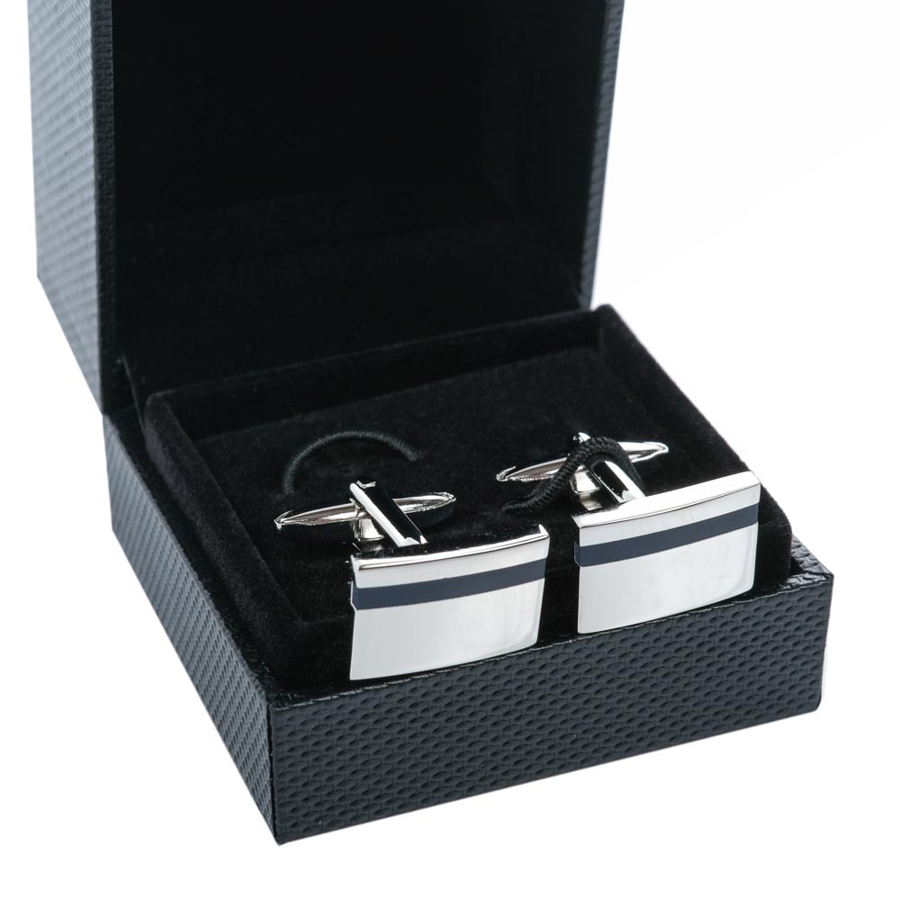 Klasszikus stílusú, téglalap alakú ezüstszínű mandzsettagomb sötétkék csíkkal díszítve. A mandzsettagombot egyedi díszdobozban szállítjuk. Típus: Chattier CC-WR20-290NV