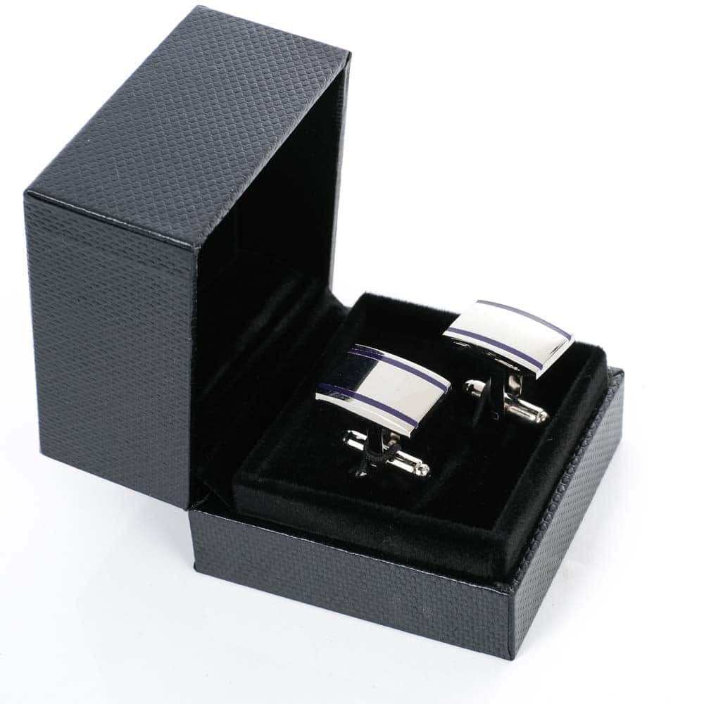 Klasszikus stílusú, téglalap alakú, sötétkék csíkos mandzsettagomb elegáns kialakítással. A mandzsettagombot egyedi díszdobozban szállítjuk. Típus: Chattier WR18-237NV