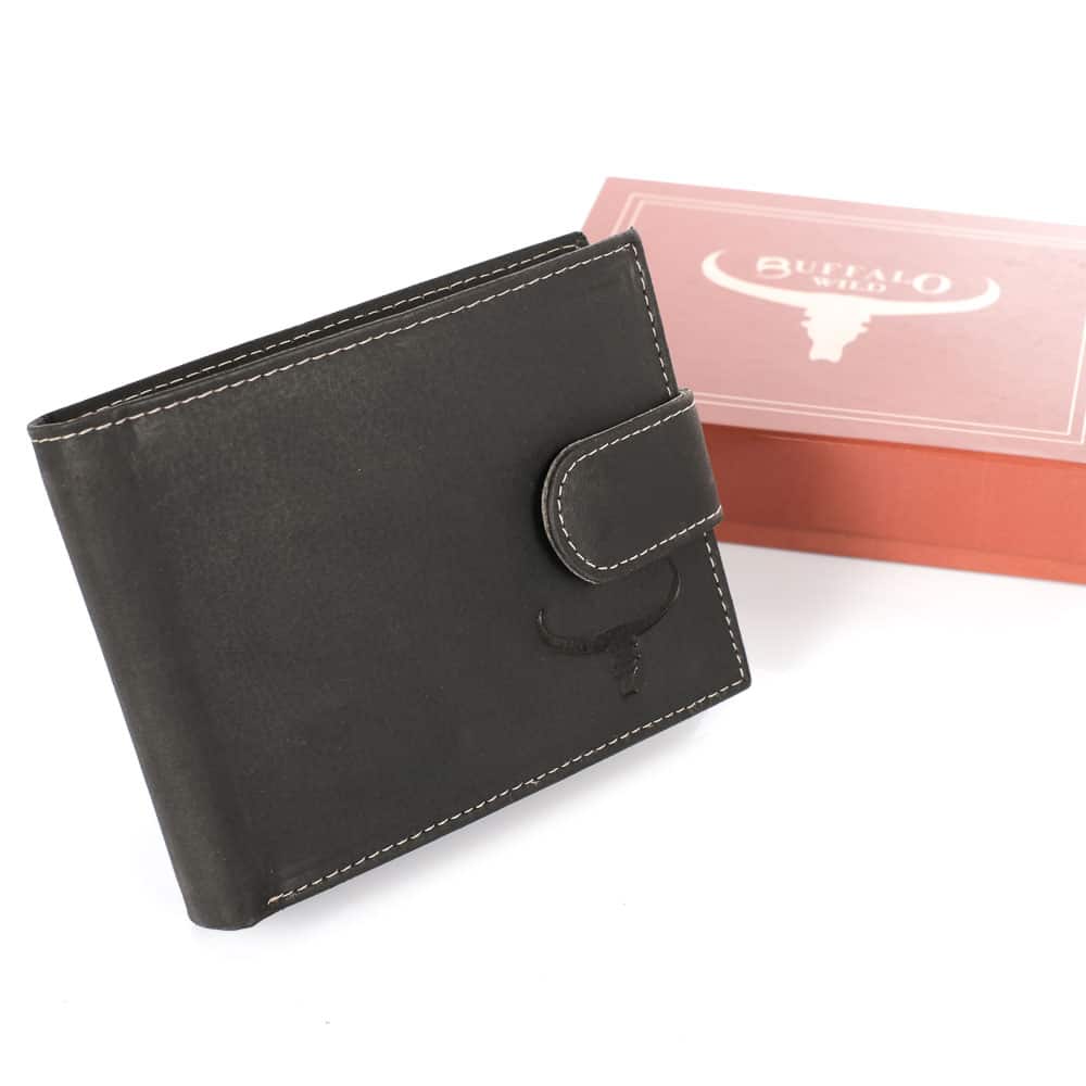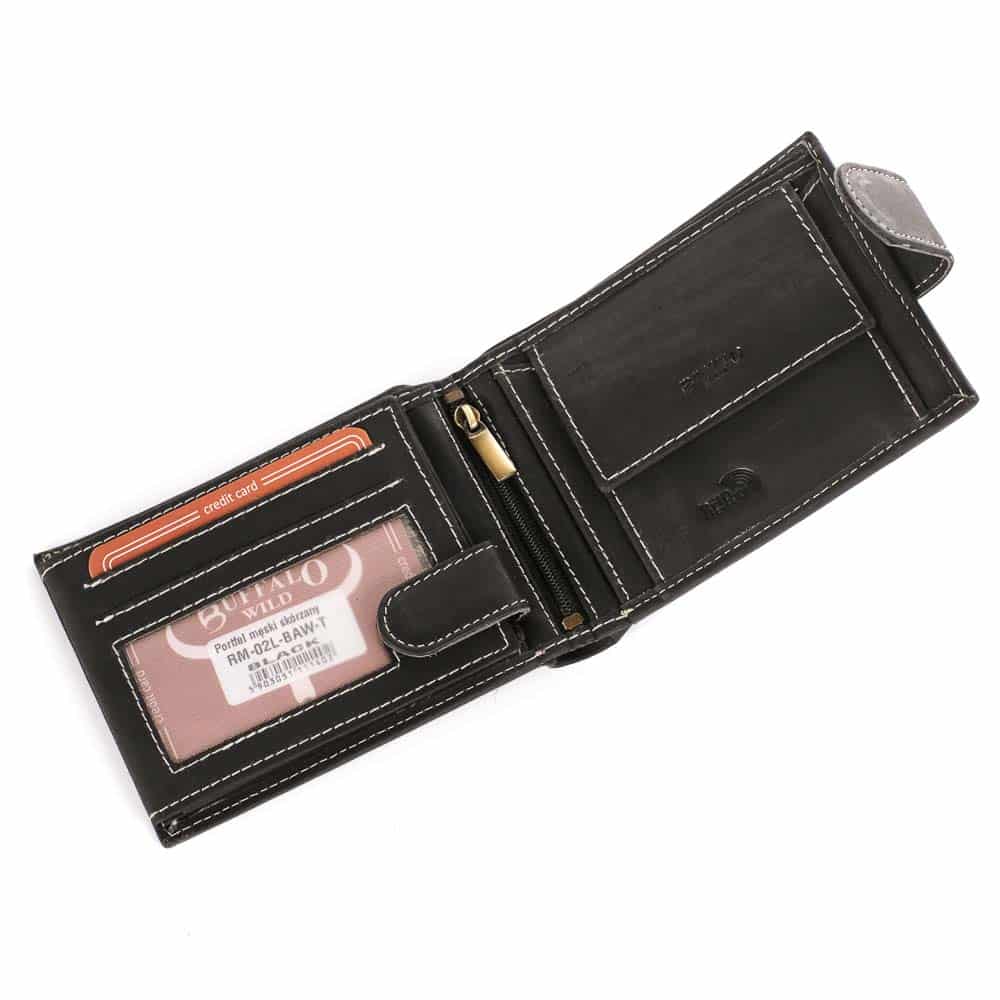 Bőr pénztárca Buffalo RM-02L RFID fekete, díszdobozban