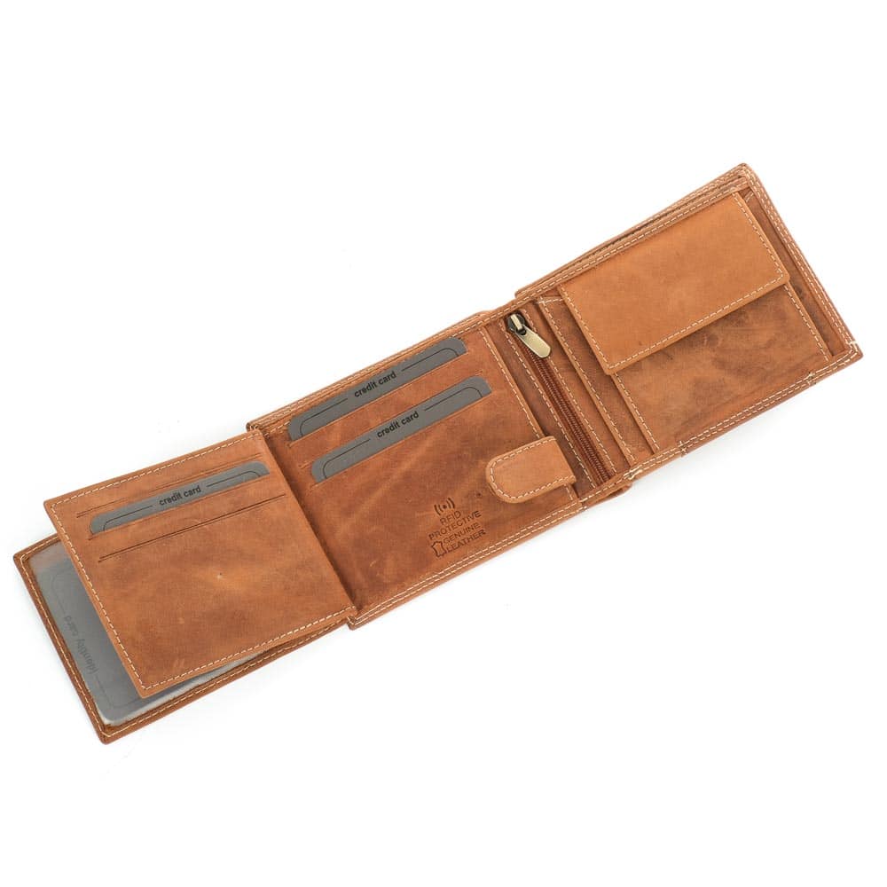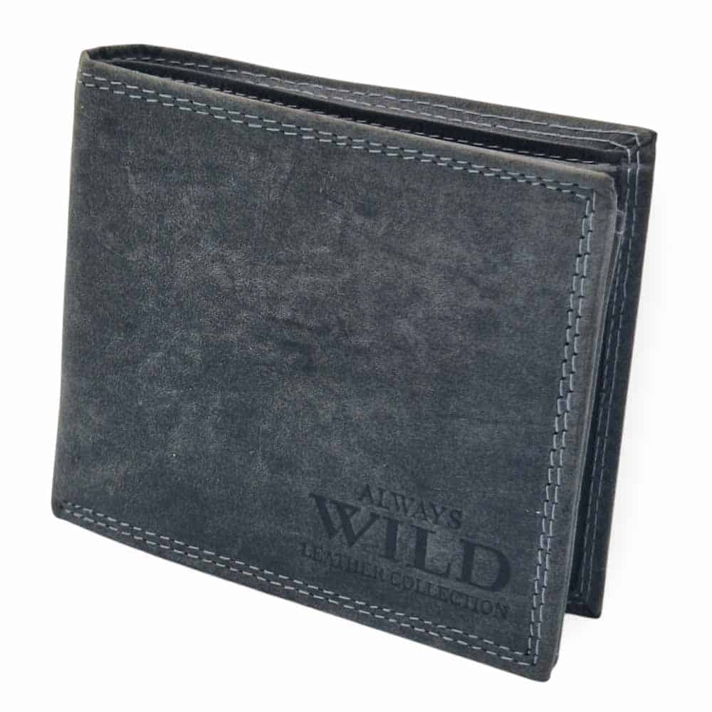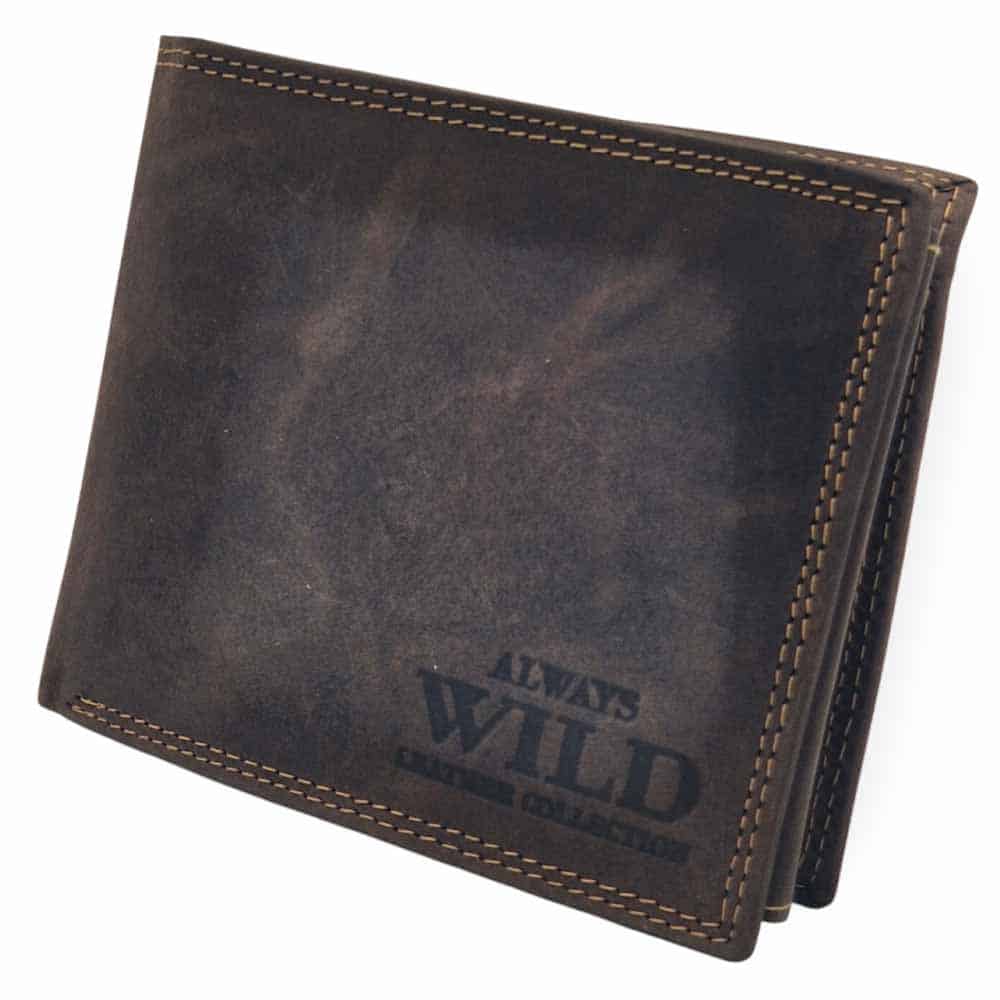 Koptatott valódi bőrből, világos cérnavarrással készült férfi pénztárca. Elegáns, letisztult designnal és praktikus kialakítással, az elején „Wild” logóval. Patenttal zárható aprópénztartóval, két papírpénztartó résszel. 15 db kártya és irat tárolására kialakított hellyel. 12,5 x 10,5 cm –es méretének köszönhetően ebben a tárcában minden iratod és kártyád elfér.
