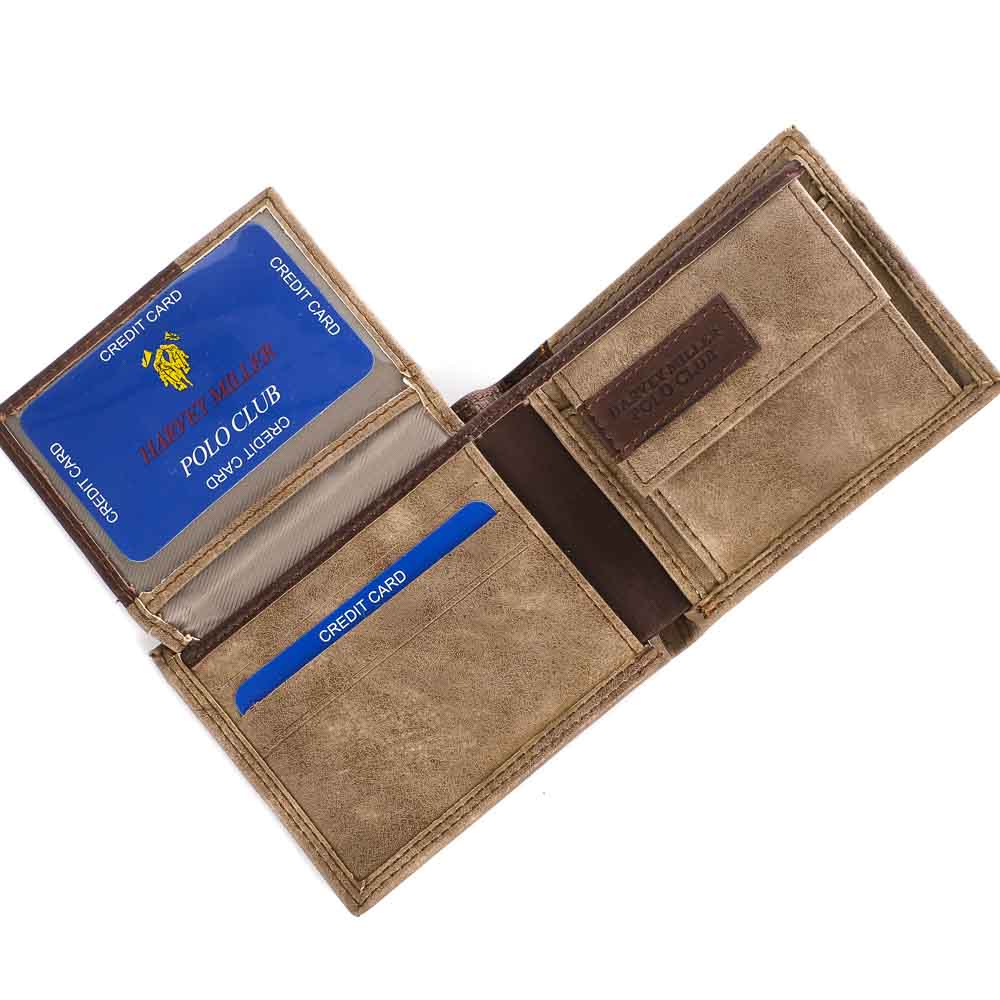 Kétféle anyag kombinálásával készült, magas minőségű és limitált kiadású Harvey Miller férfi pénztárca. Kisebb méretű, mérete bezárva 11 cm * 9 cm. Kétrészes papírpénztartót, patentos aprópénztartót, és 10 irat vagy kártya tárolására alkalmas részt talál a tárca belsejében.