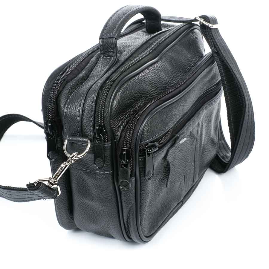 Kiváló minőségű, Lengyelországban készült valódi bőr oldaltáska, válltáska férfiaknak. A táska felső részén lévő füllel hordhatjuk kézben, a 2,5 cm széles lecsatolható vállpánttal viselhetjük vállon, vagy a vállon átlósan átvetve. A táska összesen 5 részből illetve zsebből áll, mindegyiket erős cipzárral zárhatjuk.