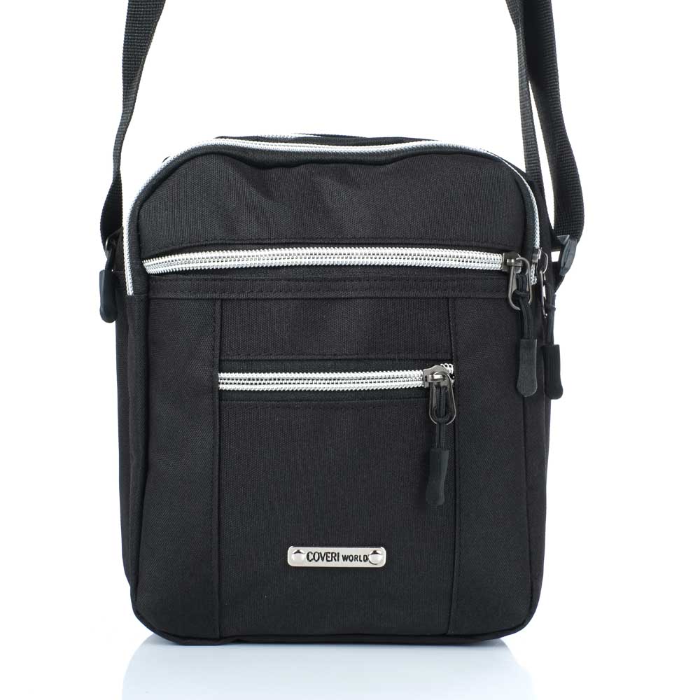 Kényelmesen hordható Coveri World válltáska. Két nagyobb különálló része könnyen pakolható, amelyek ezüst színű cipzárral zárhatóak. Elől két kisebb cipzáros zseb található. Anyaga vászon, amely tartós és könnyen tisztítható. A vállpánt hosszúsága igény szerint állítható.