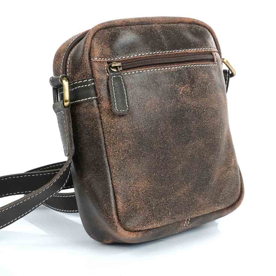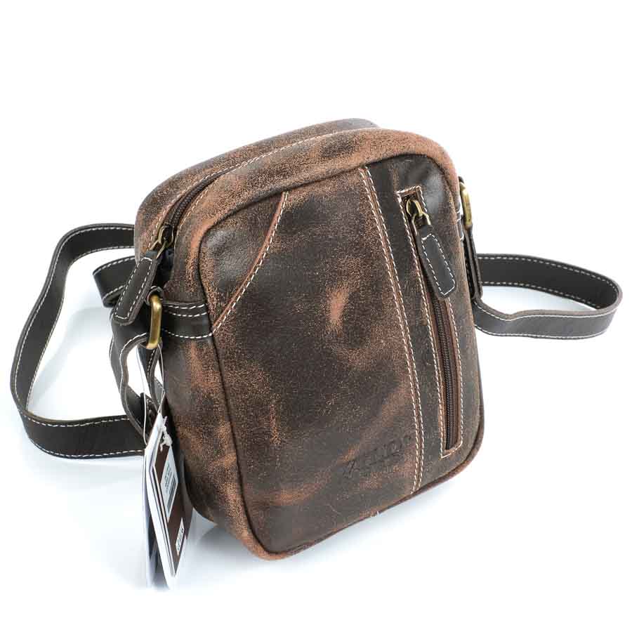 Valódi bőrből készült elnyűhetetlen férfi válltáska, koptatott, natúr felülettel. Karakteres borítása stílusos külsőt kölcsönöz viselőjének. A táska külsején elől és hátul 1-1 cipzáros zseb található. A táskát egy cipzárral nyithatjuk ki, belső része egy részből áll, oldalt egy telefontartó és egy cipzáros zsebbel. 2,5 cm-es vállpántja szintén bőrből készült erős és tartós kivitelben. A táska mérete: 17 cm x 21 cm, vastagsága 6 cm. Színe: barna