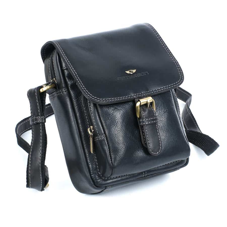 Férfi válltáska valódi bőr, fekete, Peterson TB012