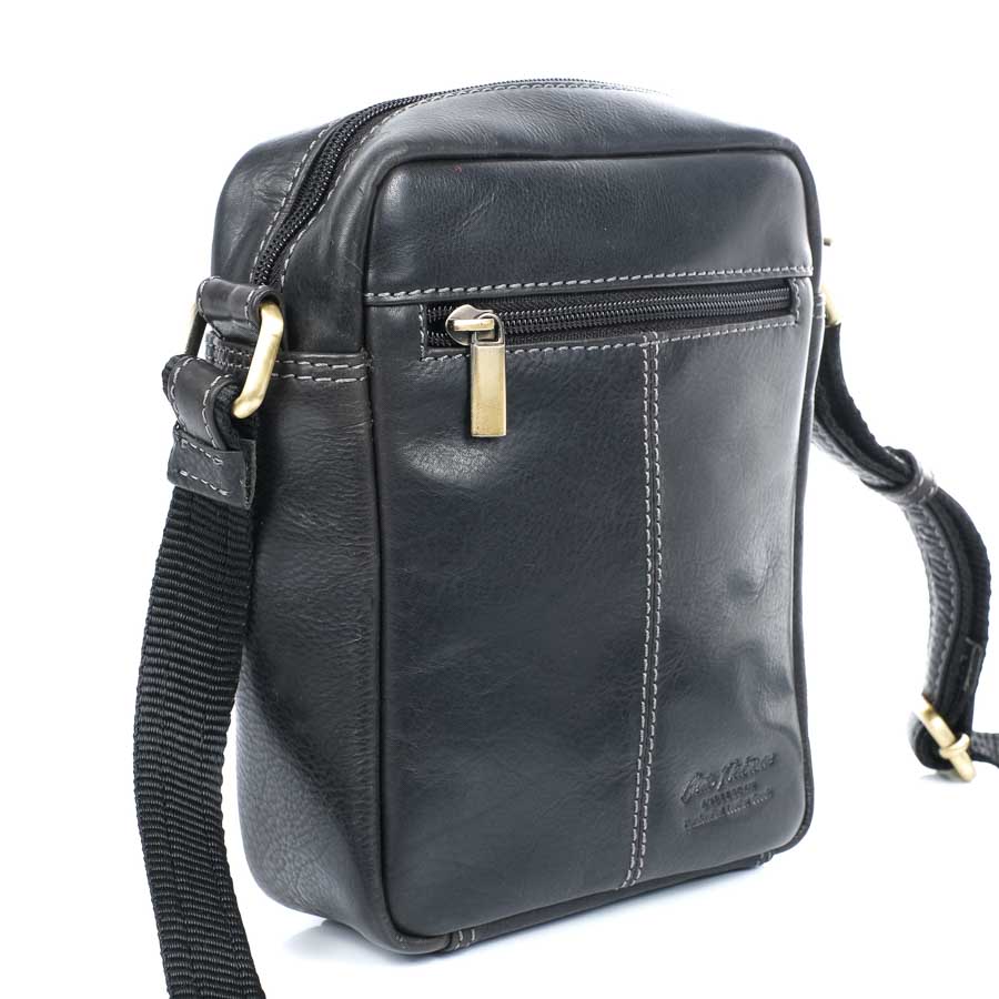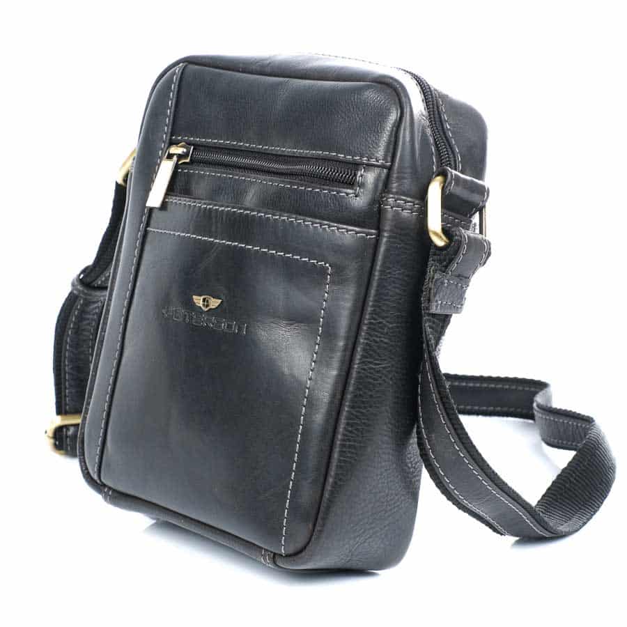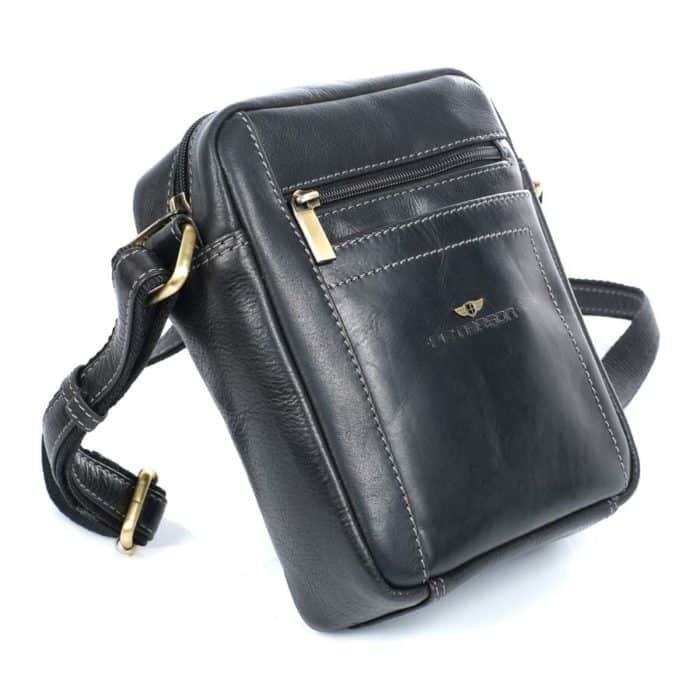 Férfi válltáska valódi bőr, fekete, Peterson TB117