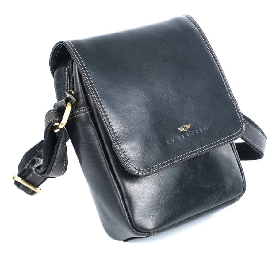 Férfi válltáska valódi bőr Peterson TB708 fekete