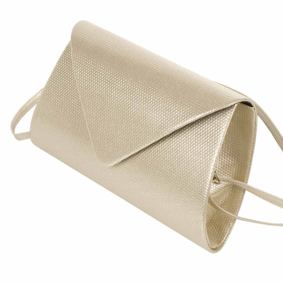 Egyszerű, letisztult vonalvezetéssel szinte bármilyen stílusú alkalmi ruhához megfelelően passzol. A lecsatolható vállpánt állítható hosszúságú, vállpánt nélkül szolid, de rendkívül szemrevaló borítéktáskaként is hordható. A táska belseje egy részből áll, oldalt cipzáras zseb található. A táska mágneses patent segítségével nyitható és zárható, mely követi a divat trendeket. A táska mérete: 24 cm széles (alul), 16 cm magas és 6 cm vastag