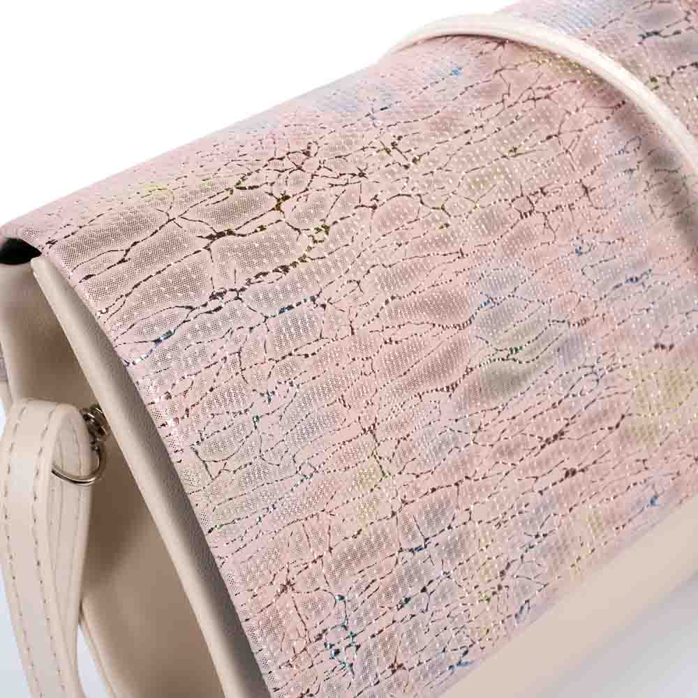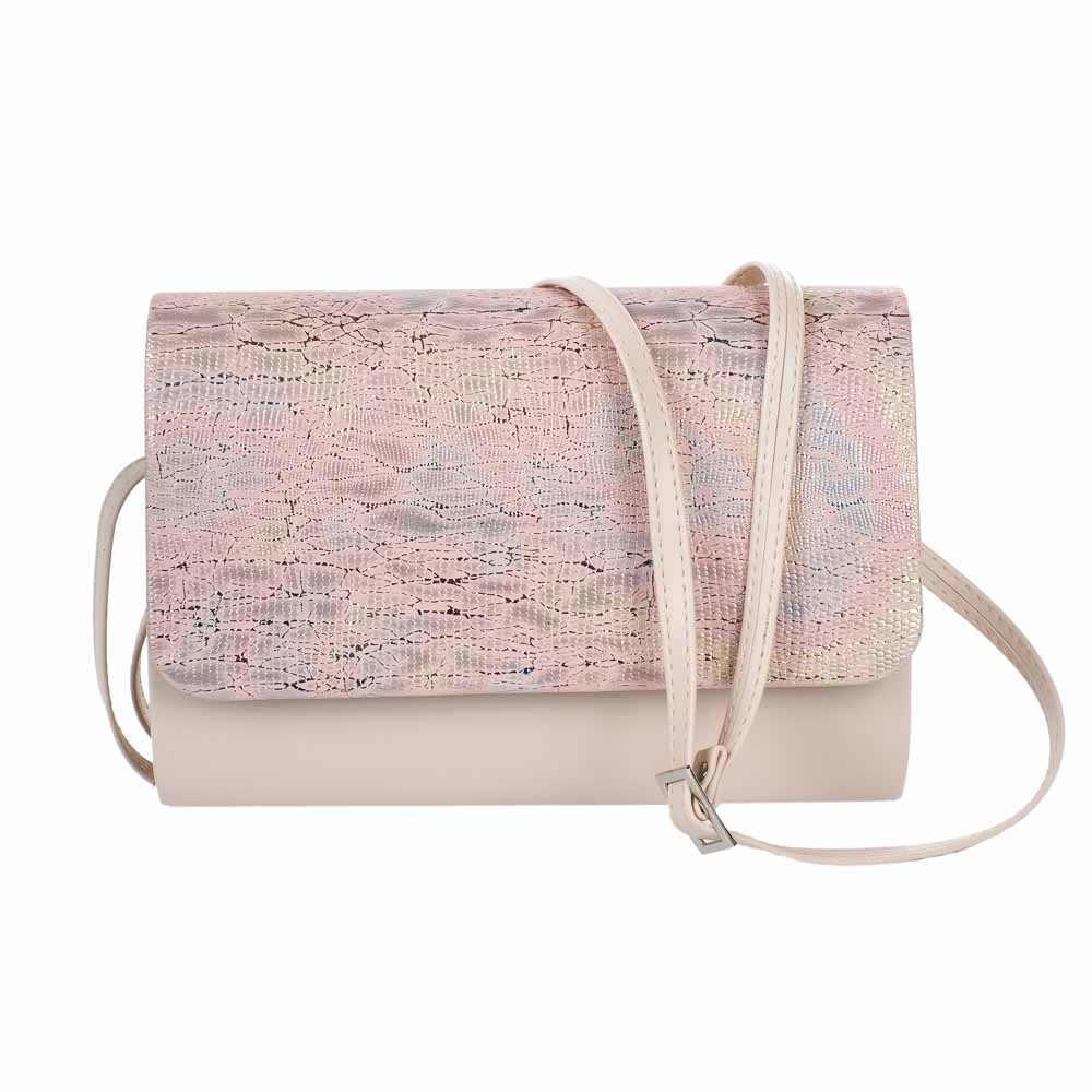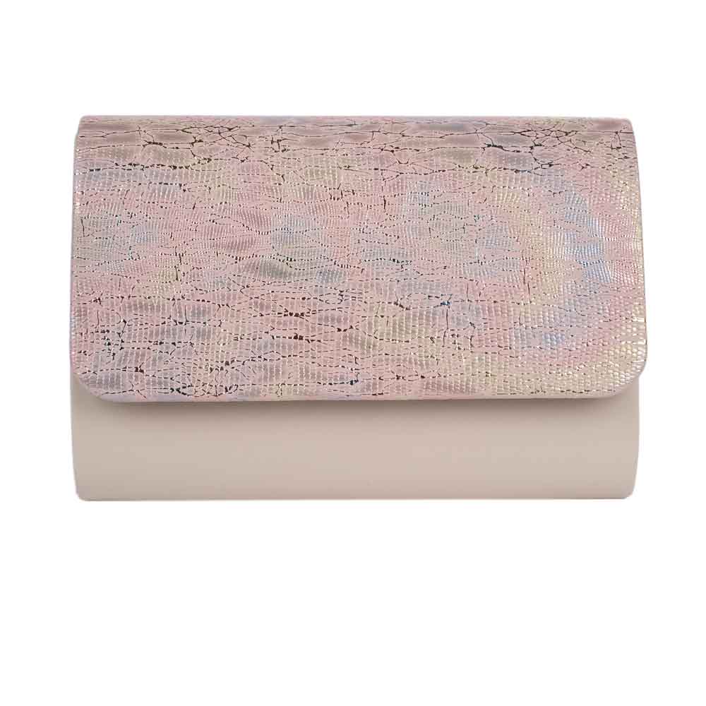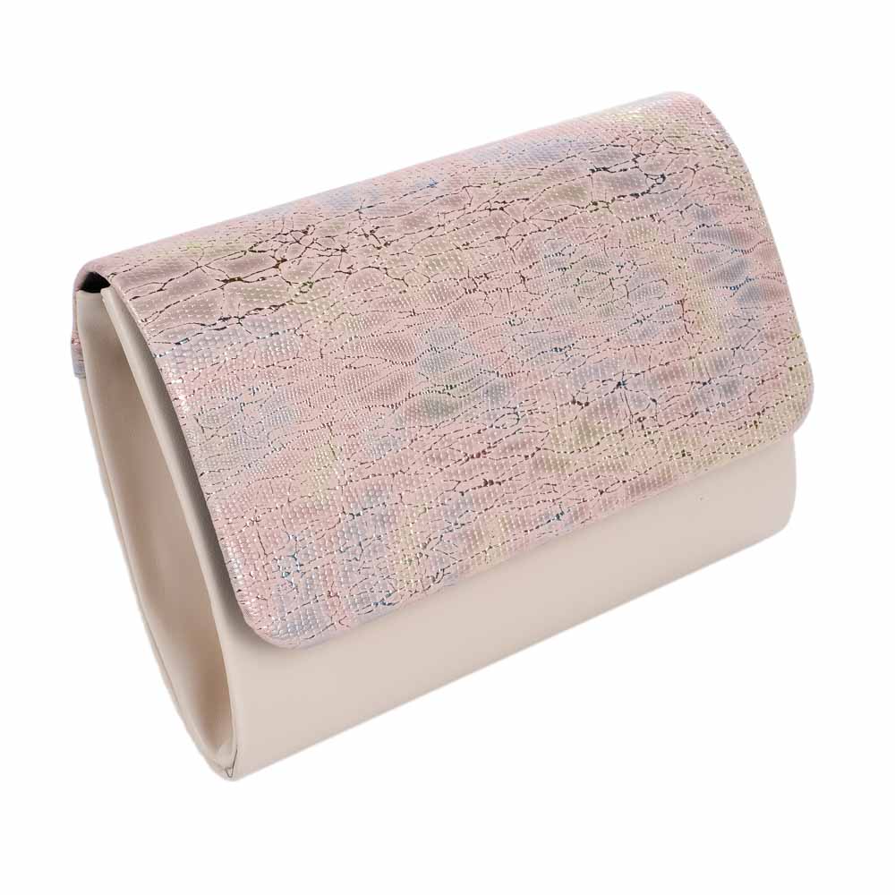 Ennek a táskának az alsó része matt drapp színű, felső része pedig különleges mintával és fantasztikus színárnyalatokban pompáz. Esküvőre, ballagásra, családi és céges eseményekre is kiváló választás ez a típusú alkalmi táska.