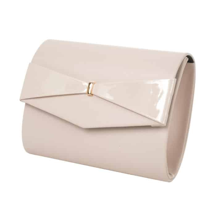Ez a táska igazán egyedi kiegészítője lehet alkalmi viseletének! Matt rózsaszín borítását elől fényes „masni” díszíti.
