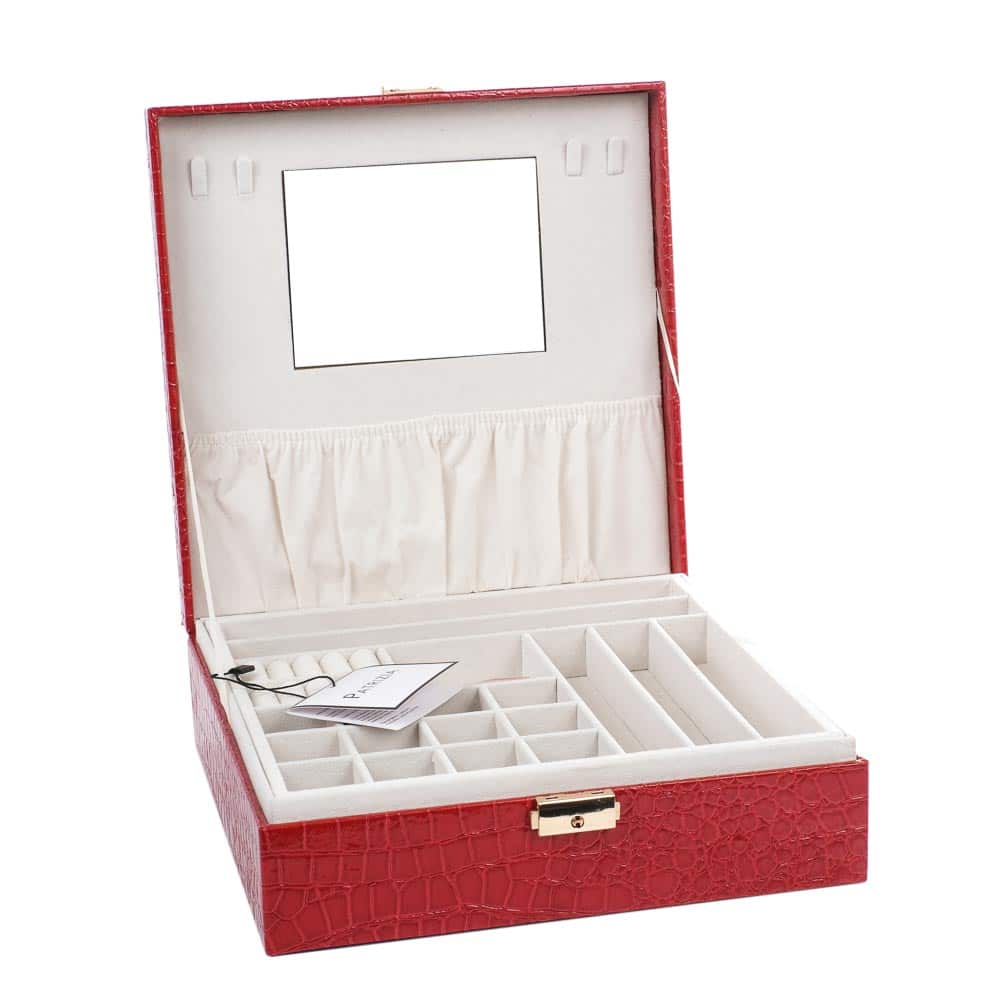 A doboz belső részén egy tükör található, amely nagyban megkönnyíti az ékszerek viselését és kombinálását. A tükör mérete 13 cm x 10 cm, ami elegendő ahhoz, hogy ellenőrizd a megjelenésedet és tökéletesítsd a stílusodat.