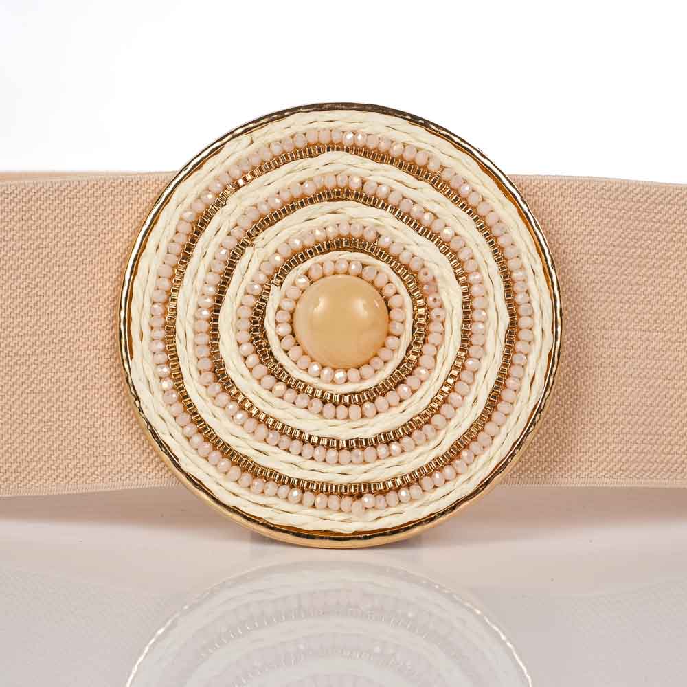 Női alkalmi öv kövekkel, rugalmas, drapp