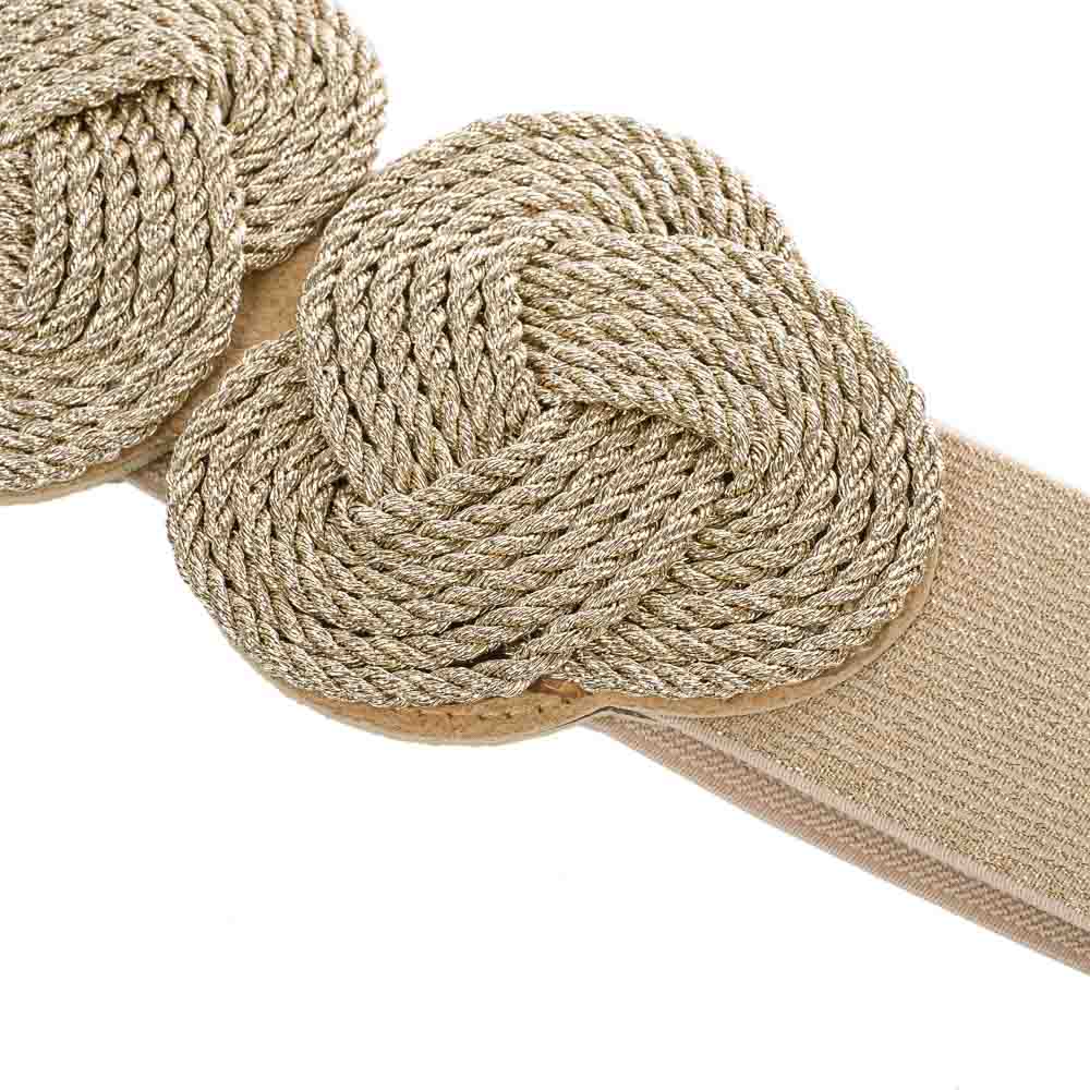 Ez az arany színű öv tökéletes választás az elegáns megjelenéshez. Az elöl található fonott dísz rész elegáns és stílusos megjelenést kölcsönöz neki. Hátul pedig két praktikus patent segítségével könnyedén rögzítheted, hogy stabilan és kényelmesen álljon a helyén.