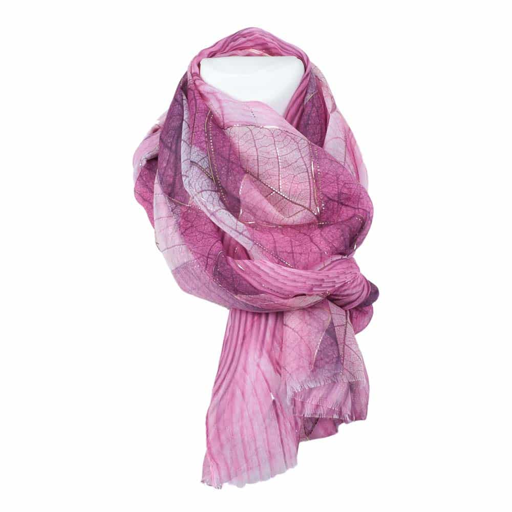 Átmeneti kendő Katier rózsaszín levelek 80 x 180