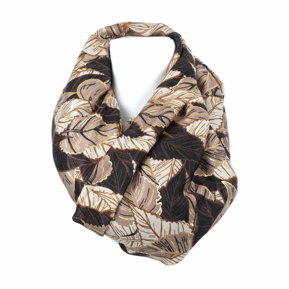 Átmeneti kendő sötétbarna levelek 50% pamut, 85 x 185