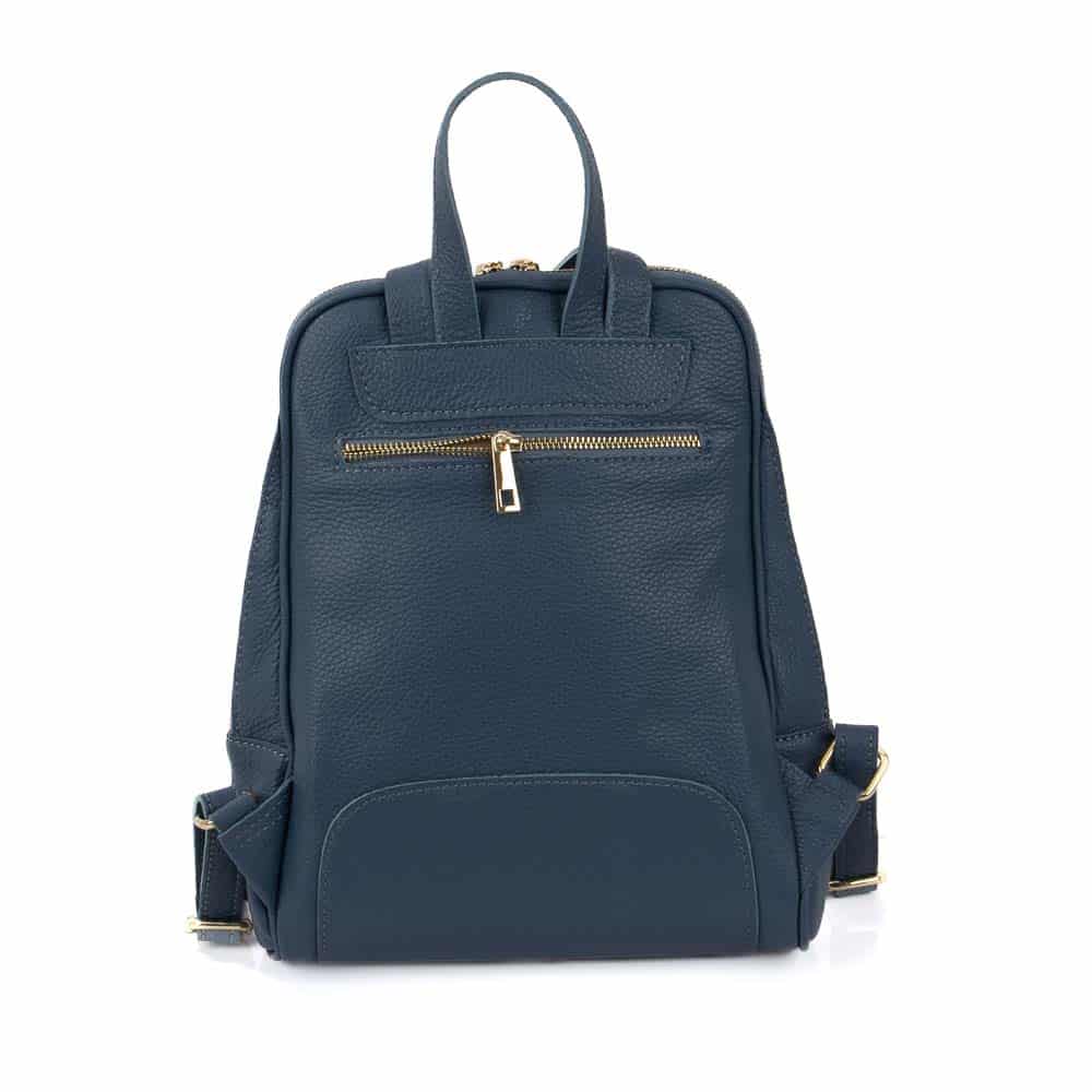 Közepes méretű hátizsák természetes, puha olasz bőrből. A hátizsák egyrekeszes szerkezetű, strapabíró béléssel, cipzáras zsebbel és telefonzsebbel van ellátva. Az egész két csúsztatható cipzárral záródik. A hátizsák elején egy függőleges zseb is található cipzárral rögzítve. A hátizsák hátulján egy további zseb található.