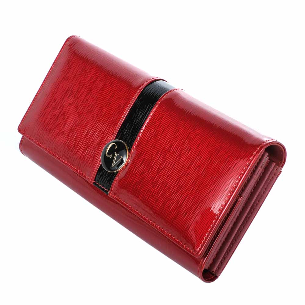 Teljes külső felületén lakkozott, valódi bőrből készült Cavaldi női pénztárca. Divatos és letisztult mintázattal, elején patenttal záródó kialakítással.