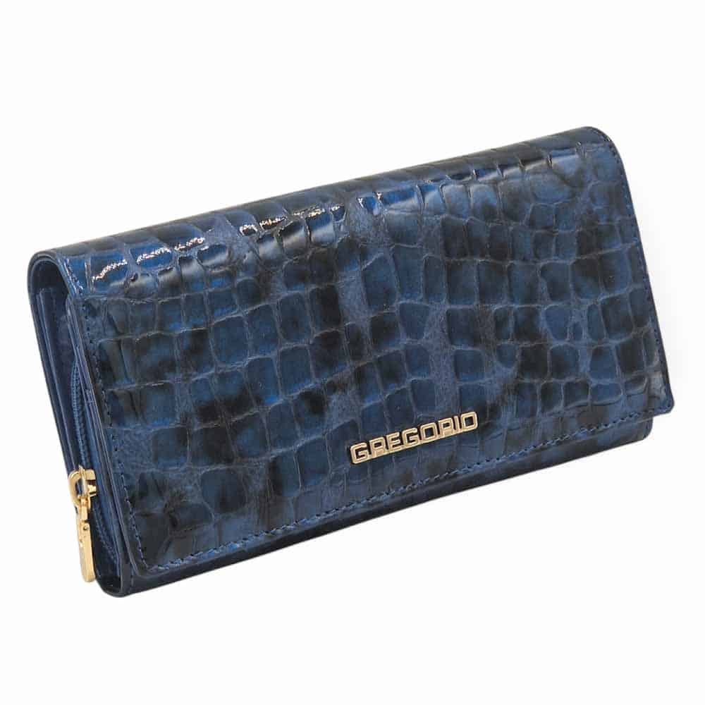 Teljes külső felületén lakkbőr Gregorio pénztárca. Valódi bőrből készült, egyedi színekben. Divatos és letisztult, elején patenttal záródó kialakítással.