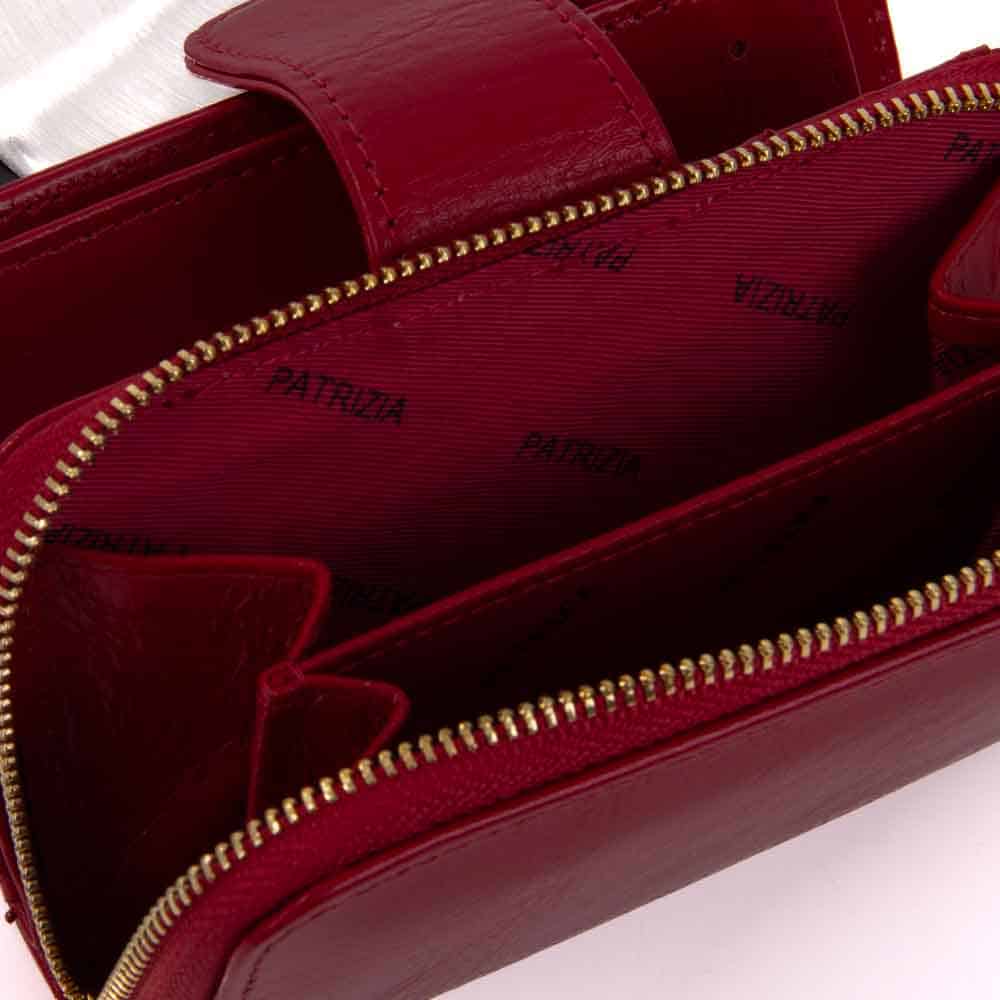Valódi bőrből készült kisméretű, Patrizia női bőr pénztárca. Átfogópántos patenttal zárható kialakítás, mely biztonságos és divatos!