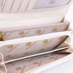 Első részén valódi lakkbőrből készültGregorio női pénztárca színes virágmintával, divatos Gregorio logóval, belső felületén egyszínű fehér bőrborítással.