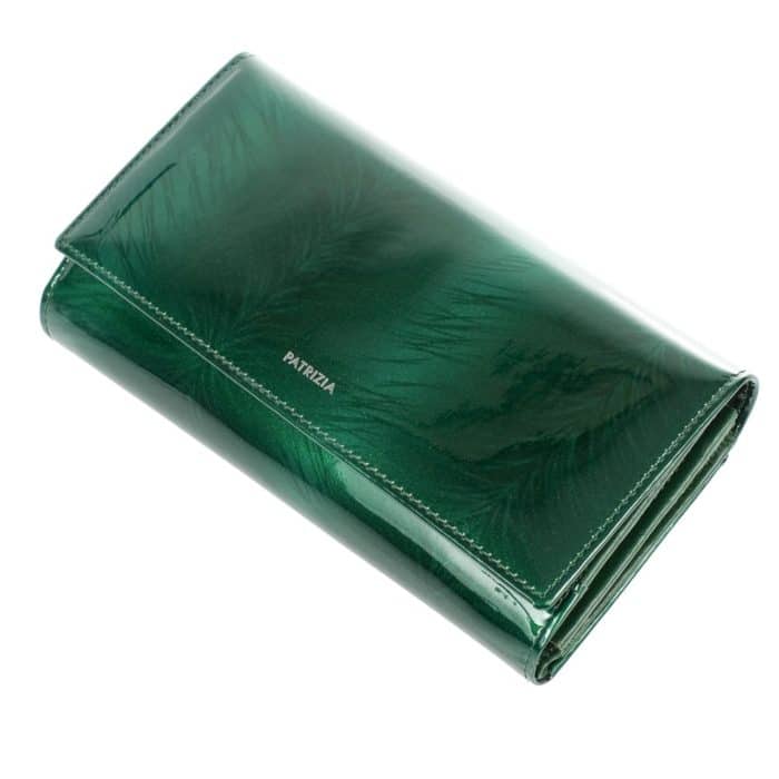 Örülünk, hogy érdeklődsz a webáruházunkban található Patrizia női pénztárca és irattartó iránt! Ez a prémium minőségű termékünk valódi bőrből készült, és a külső felülete fényes lakkbőr borítással rendelkezik. Elegáns zöld színben pompázik, amely igazán különleges megjelenést kölcsönöz neki.