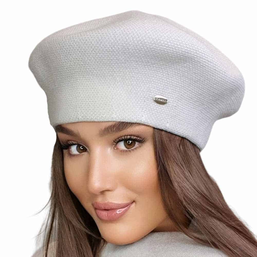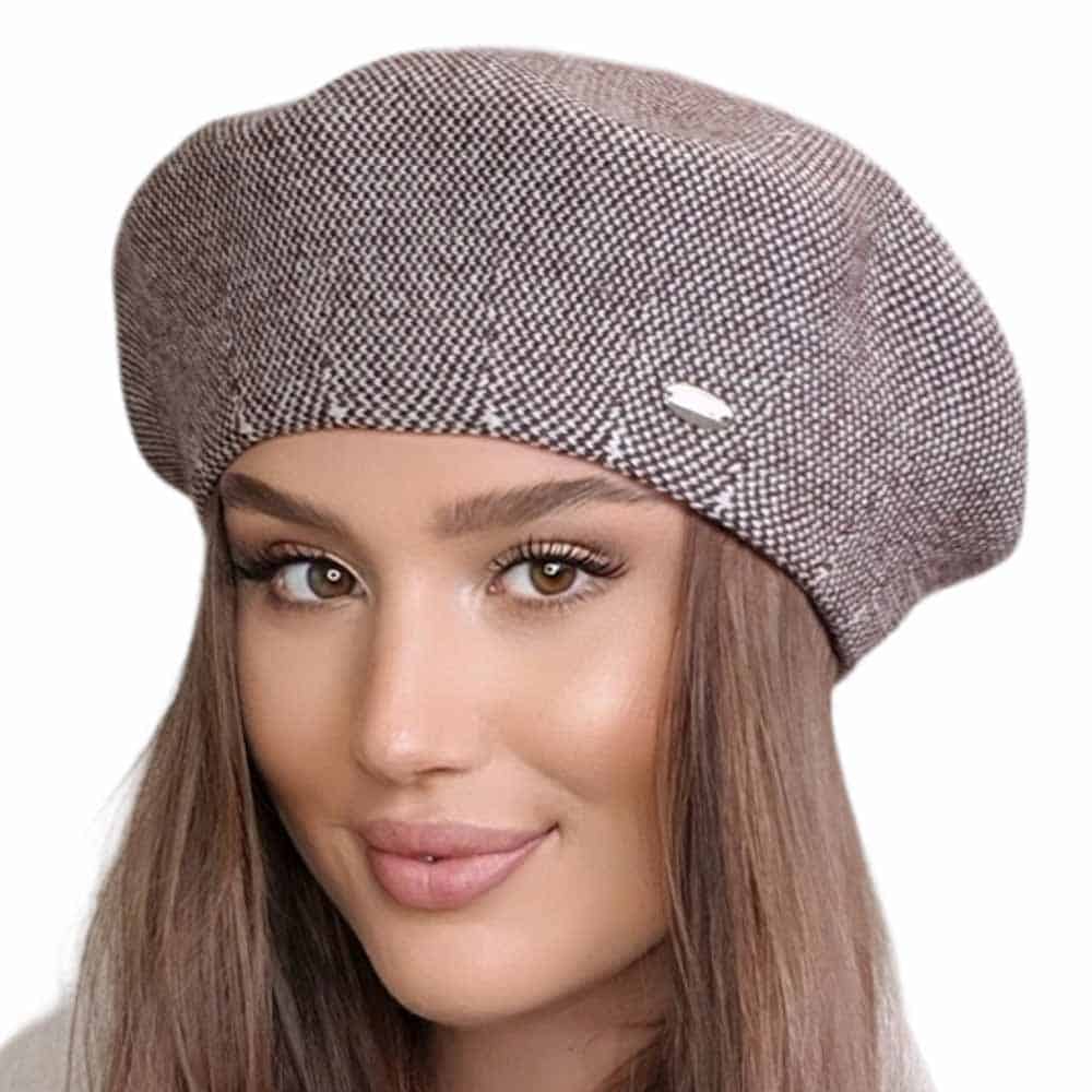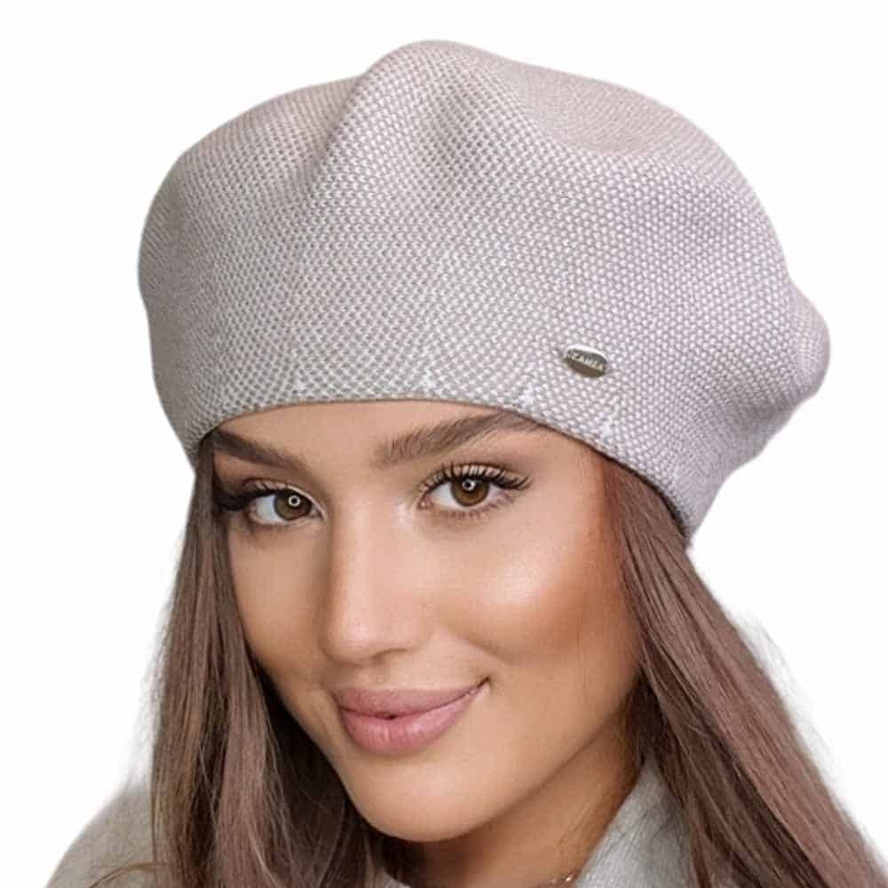 Kamea ARKADIA, Lengyelországban készült, 20% gyapjútartalommal rendelkező, kiváló minőségű női beret sapka kutyafog szövéssel.