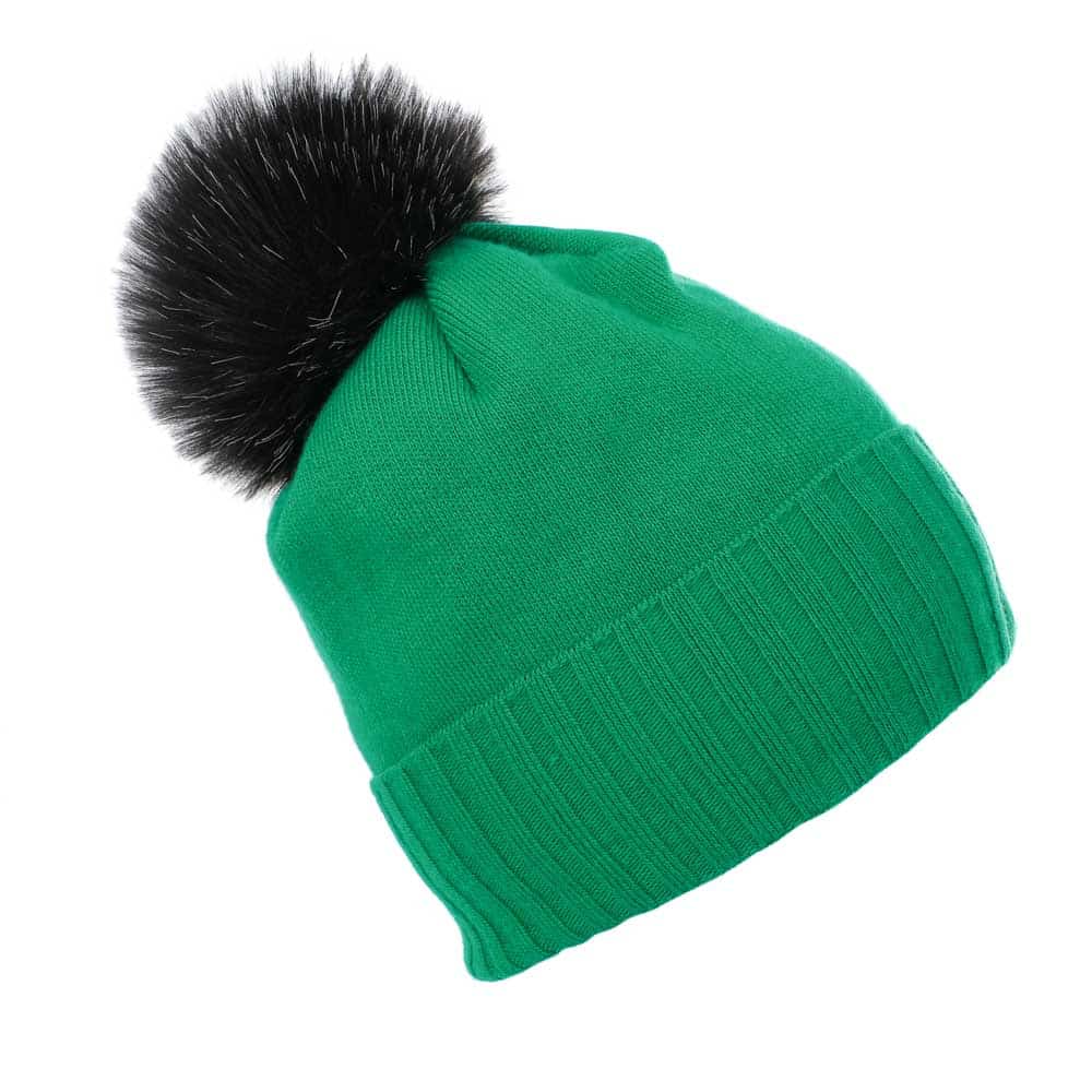 Női sapka bojttal 30% gyapjú, zöld, lengyel termék
