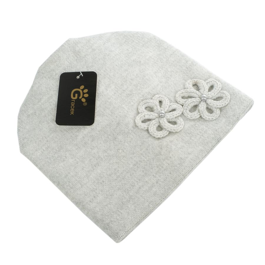 Kiváló minőségű lengyel termék, 30% gyapjútartalommal. Egyszínű világosszürke, elől virágmintával, hátul levarrt kialakítással. Kellően meleg és komfortos viselet a hideg téli napokra. Lengyelország készült sapka, márkája: Gracek. Őszi és téli időszakra ajánljuk, bármilyen kinti tevékenységhez, szabadidős programokhoz. Nem méretezett típus, enyhén elasztikus anyagának köszönhetően mindenkinek kellemes viselet. Ajándéknak is kitűnő választás.
