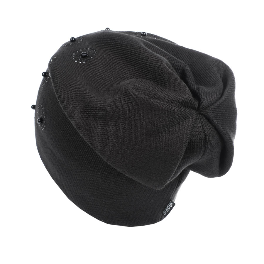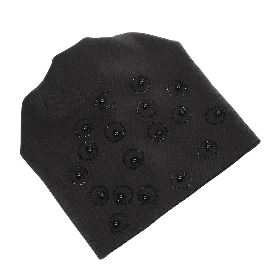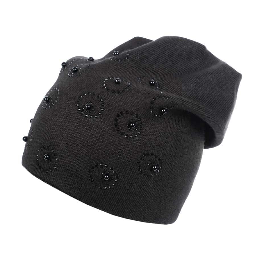 Női sapka gyöngyökkel, fekete, 30% gyapjú, lengyel termék