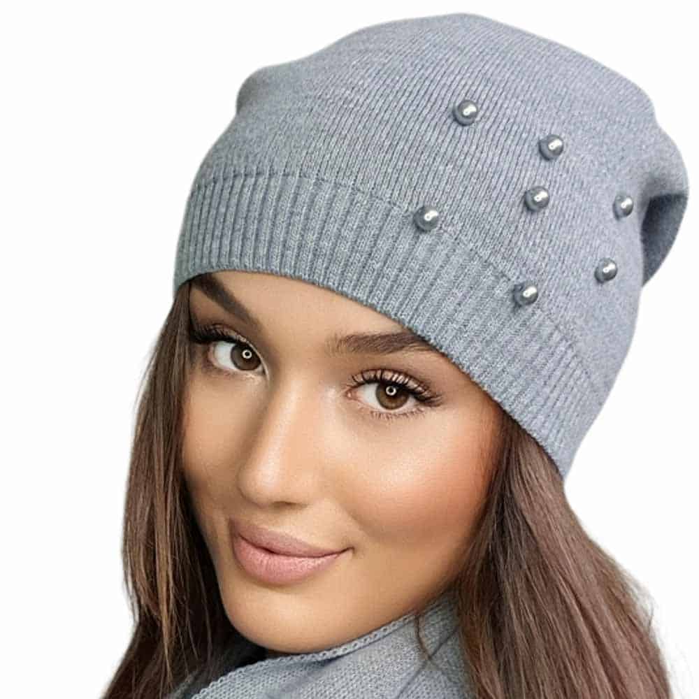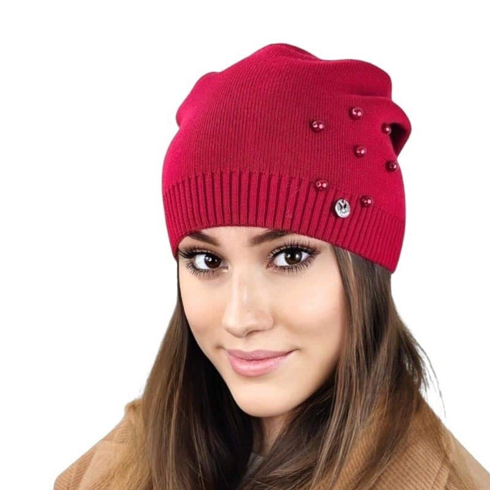 Kamea Kalcyt, Lengyelországban készült, 30% gyapjútartalommal rendelkező, kiváló minőségű női téli sapka. Gyöngyökkel díszített kialakítás, és tökéletes forma jellemzi ezt a sapkát.
