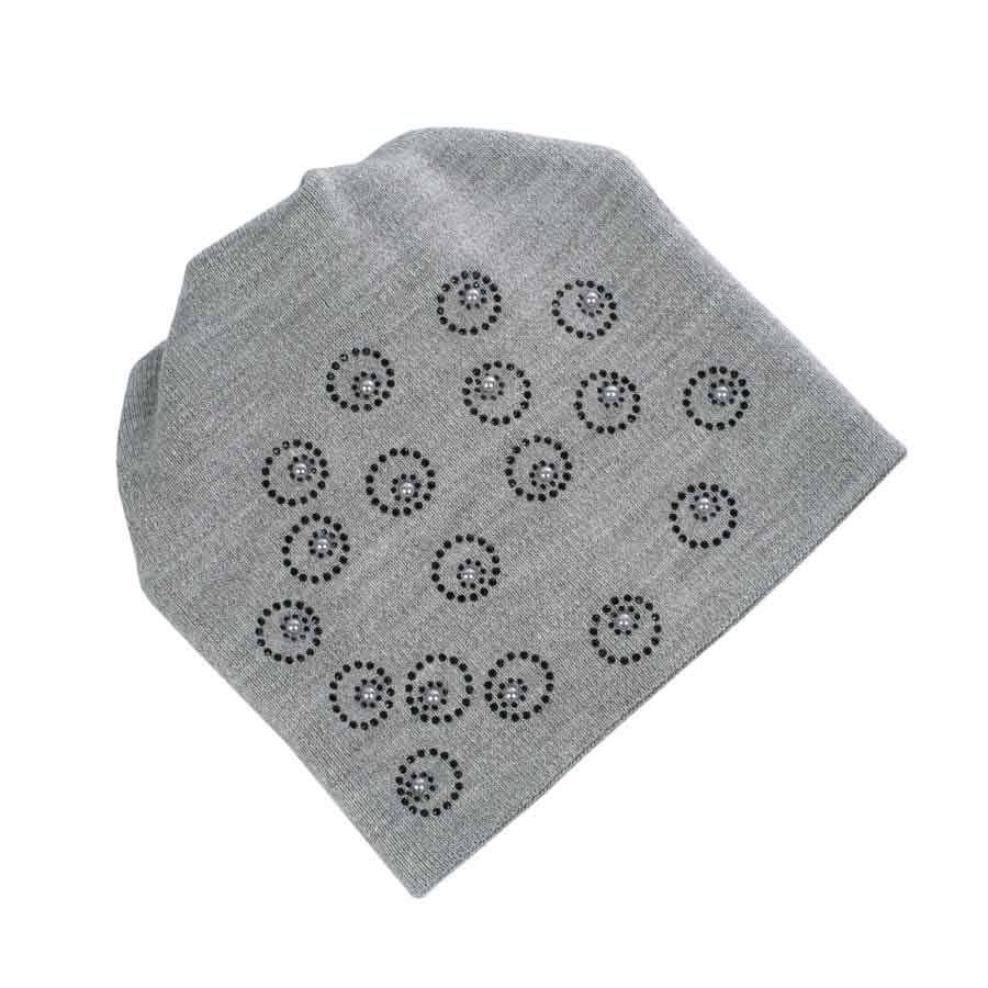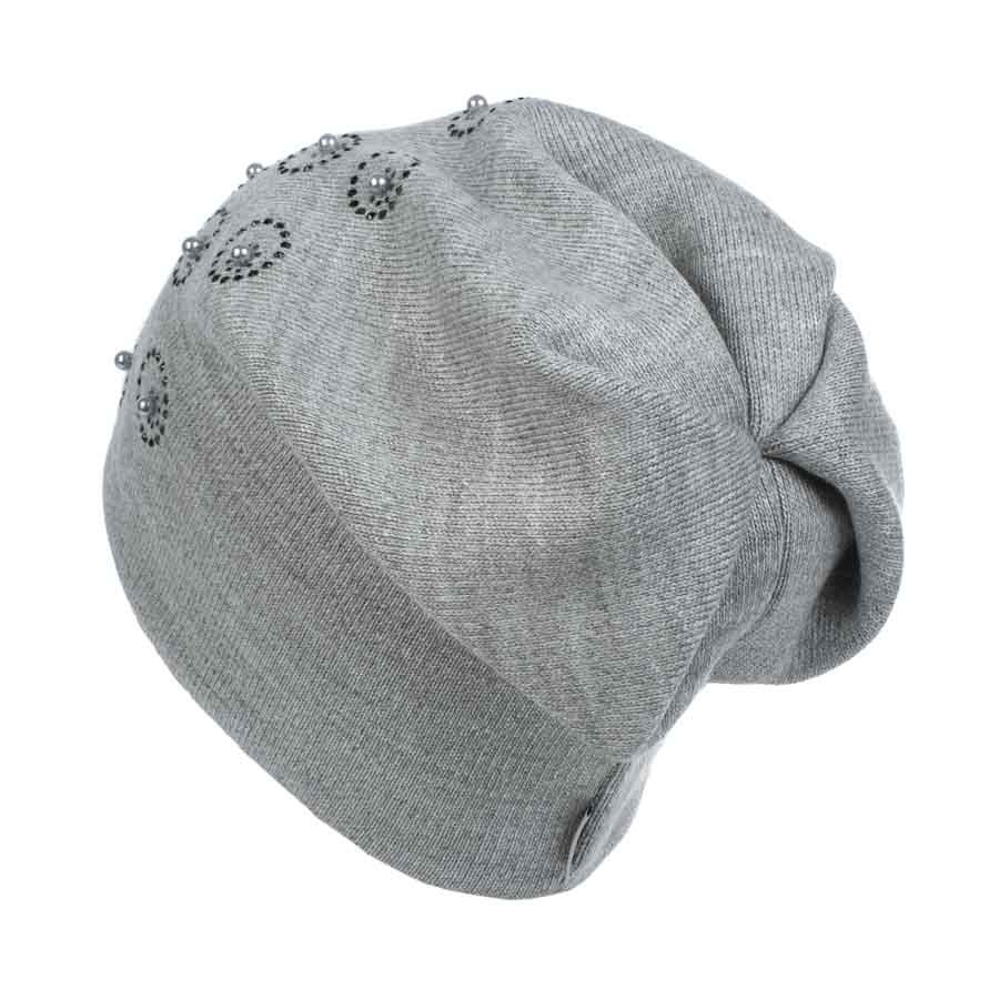 Női sapka gyöngyökkel, szürke, 30% gyapjú, lengyel termék