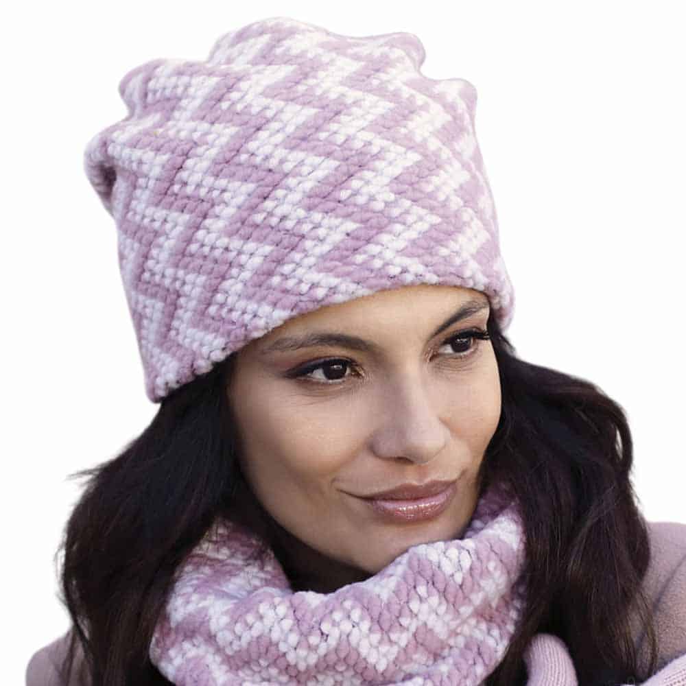 Kamea Madison, Lengyelországban készült, 49% gyapjútartalommal rendelkező, kiváló minőségű puha szövésű gyapjú női téli sapka cikkcakk mintázattal több színben.