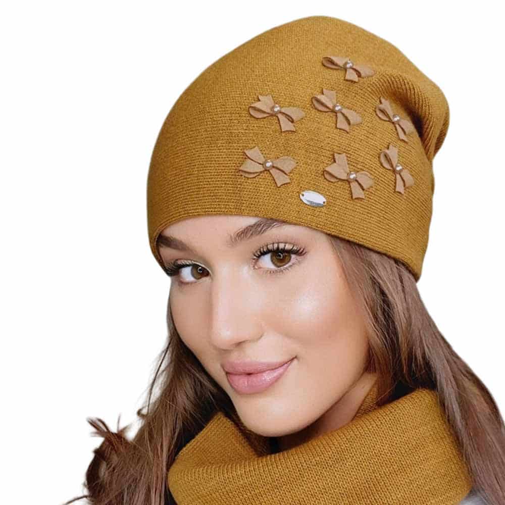 Kamea Cyria, Lengyelországban készült, 30% gyapjútartalommal rendelkező, kiváló minőségű női téli sapka. Masnikkal díszített kialakítás, és tökéletes forma jellemzi ezt a sapkát.