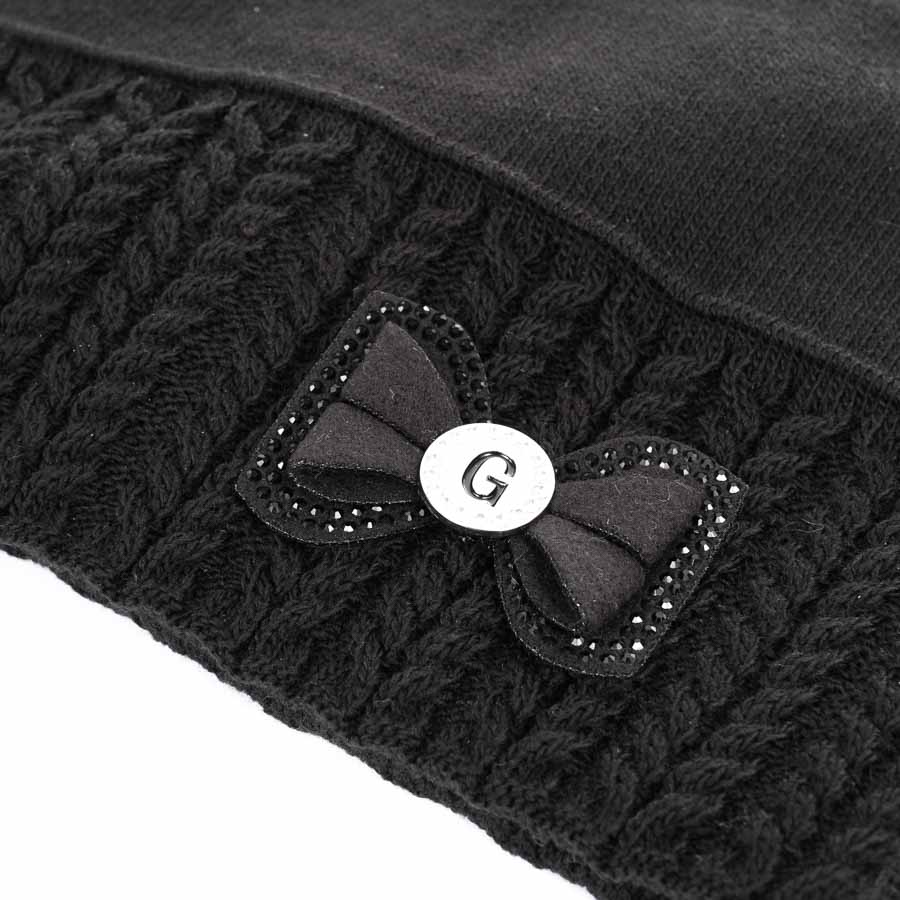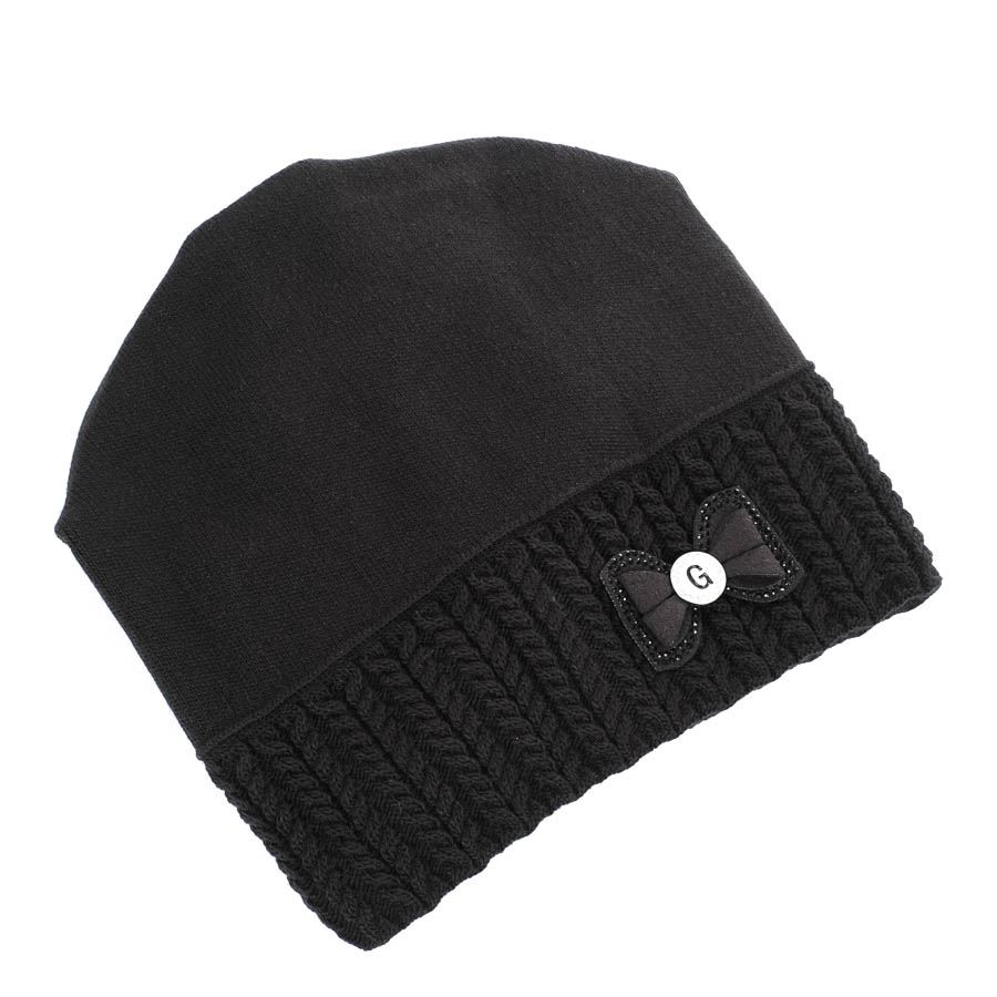 Női sapka masnival, fekete, 30% gyapjú, lengyel termék