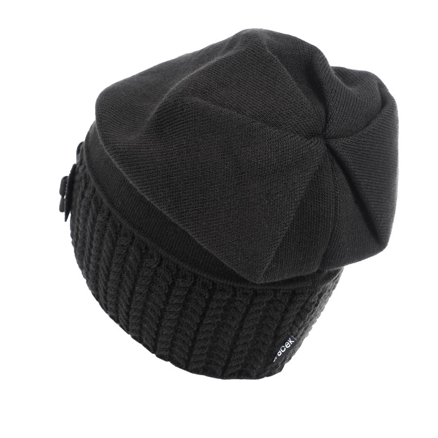 Kiváló minőségű lengyel termék, 30% gyapjútartalommal. Egyszínű fekete, elől masnival, hátul levarrt kialakítással. Kellően meleg és komfortos viselet a hideg téli napokon. Lengyelország készült sapka, márkája: Gracek. Őszi és téli időszakra ajánljuk, bármilyen kinti tevékenységhez, szabadidős programokhoz. Nem méretezett típus, enyhén elasztikus anyagának köszönhetően mindenkinek kellemes viselet. Ajándéknak is kitűnő választás.