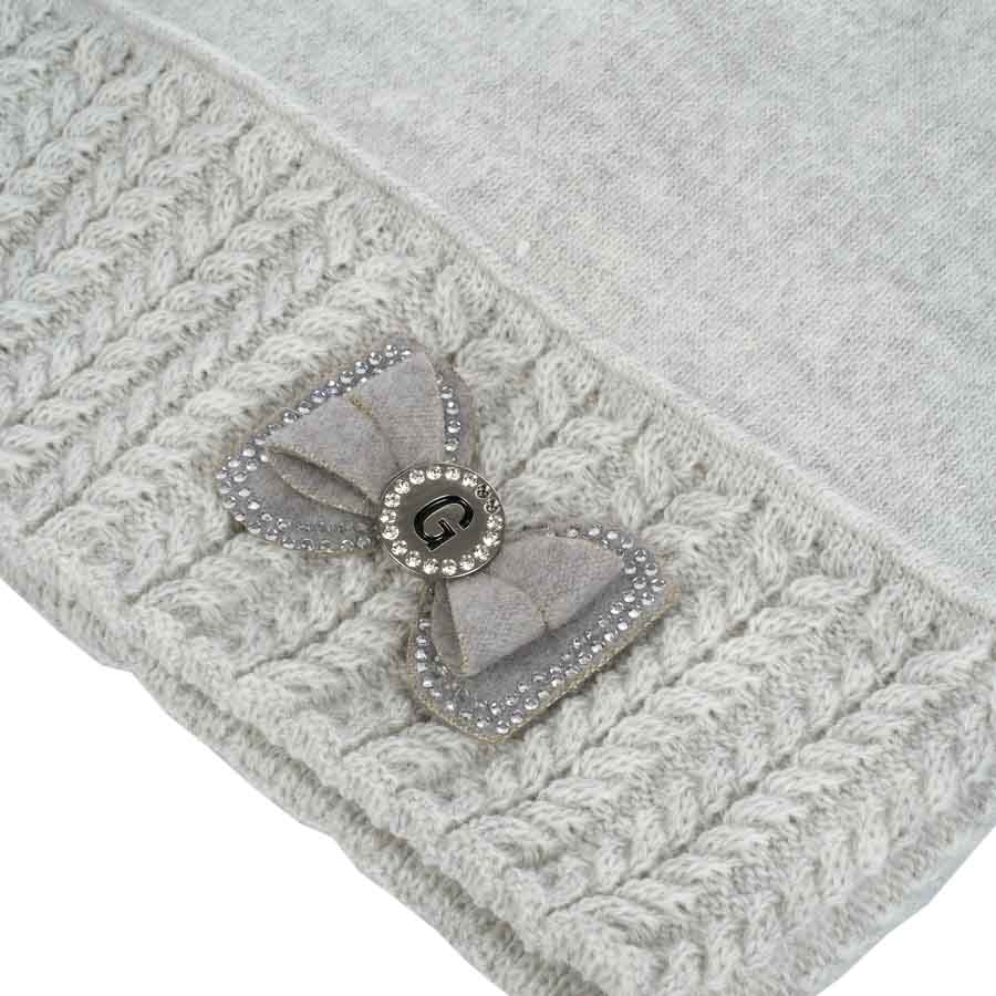 Női sapka masnival, szürke, 30% gyapjú, lengyel termék
