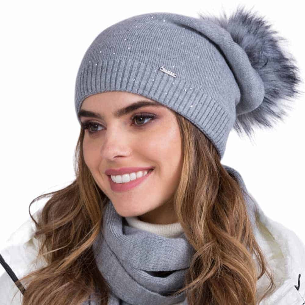 Női sapka pomponnal és cirkóniákkal Kamea MAJA