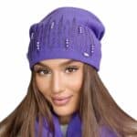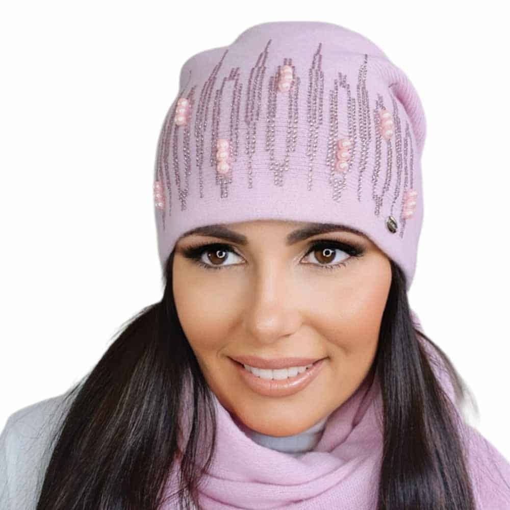 Kamea Gina, Lengyelországban készült, kiváló minőségű női téli sapka. Gyöngyökkel és strasszokkal díszítve., 80% gyapjútartalommal.