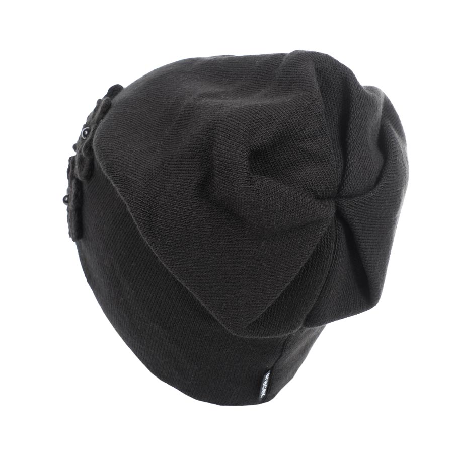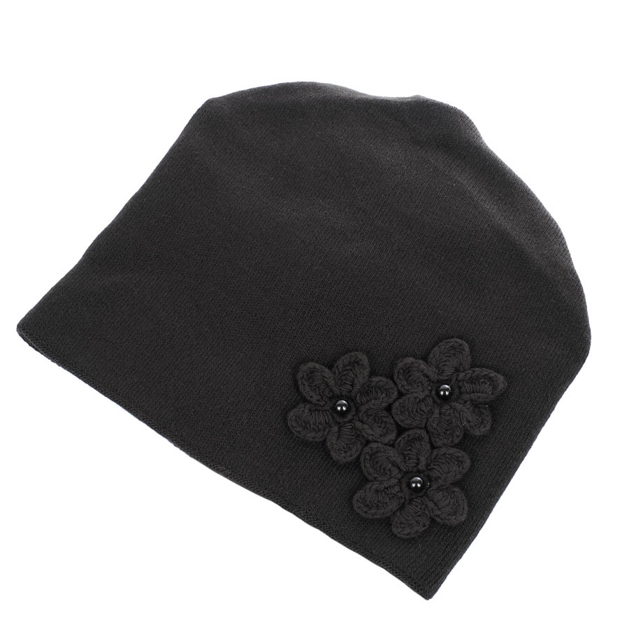 Női sapka virágmintával, fekete, 30% gyapjú, lengyel termék